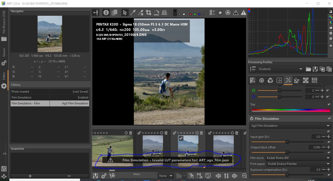 Look at the message I get when I turn on the film simulation and the same message in the color correction tab