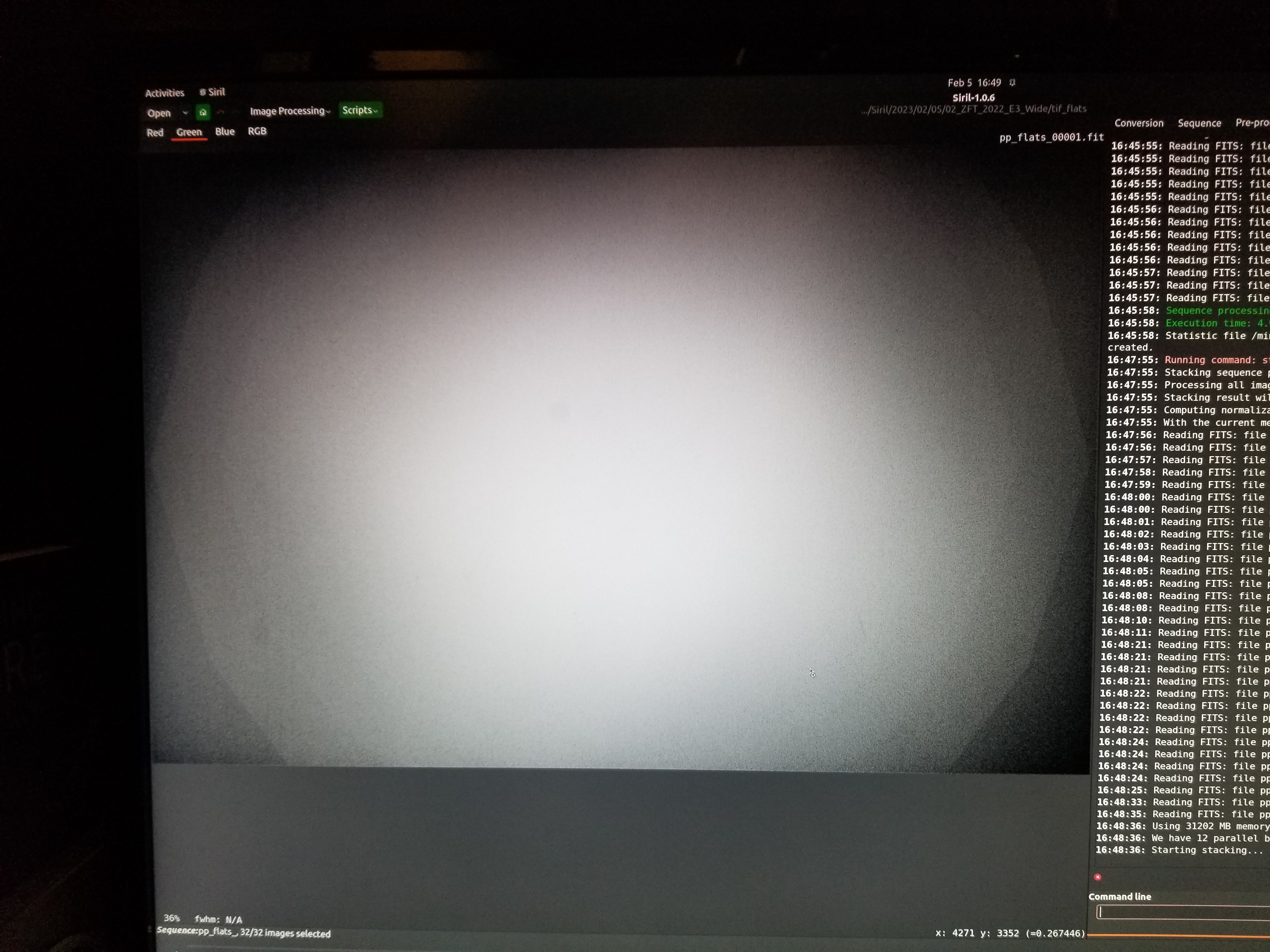 What I am noticing is that when I stack my lights with darks and flats (preprocessed with bias or with offset constant) I get this weird “halo” effect in my lights stack. The halo appears to correspond to the flats but is inverted. In the flats the center is light and the vignetting is darker. In the light stack the center is dark (or clear, maybe?) and the vignetting shows up as light.