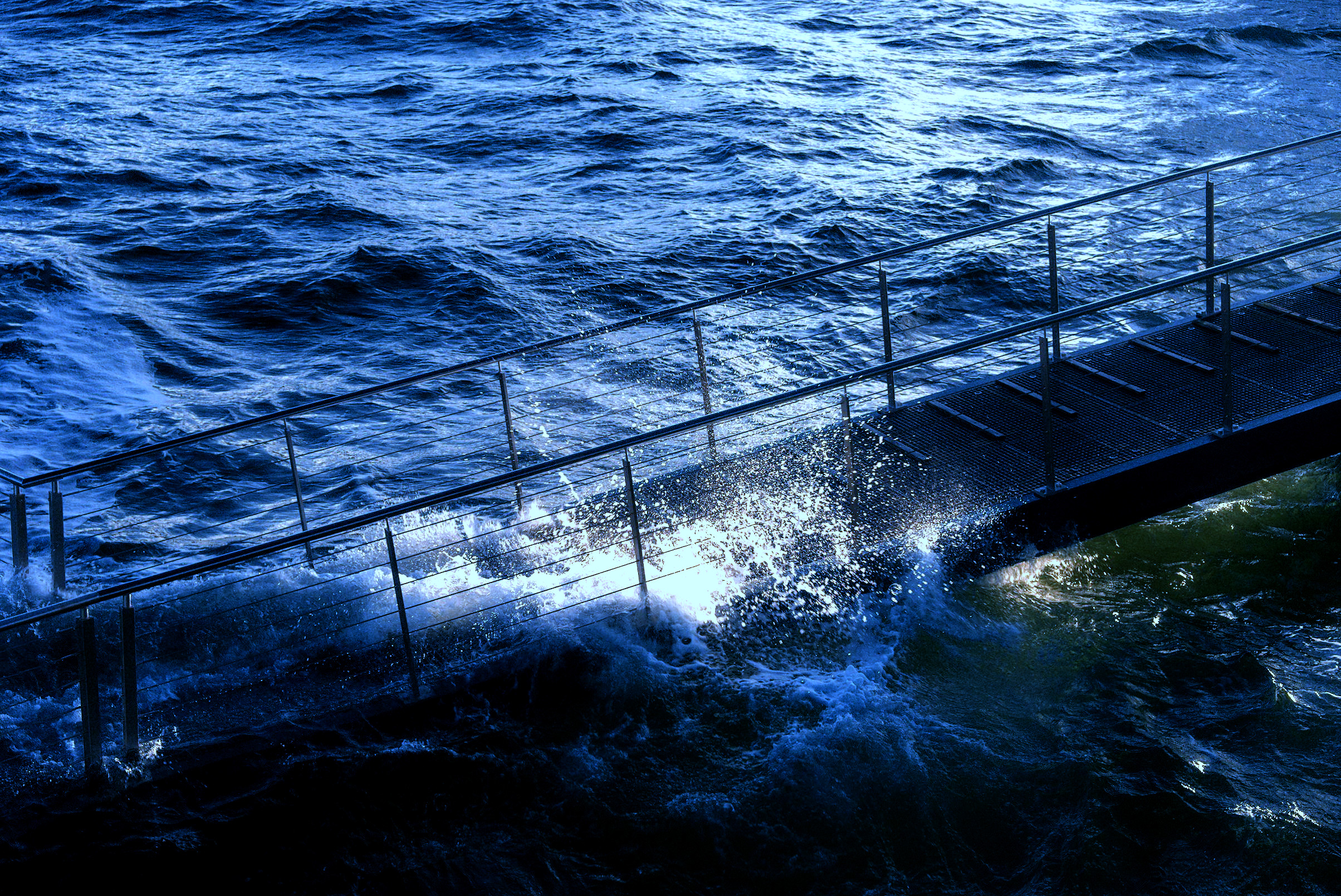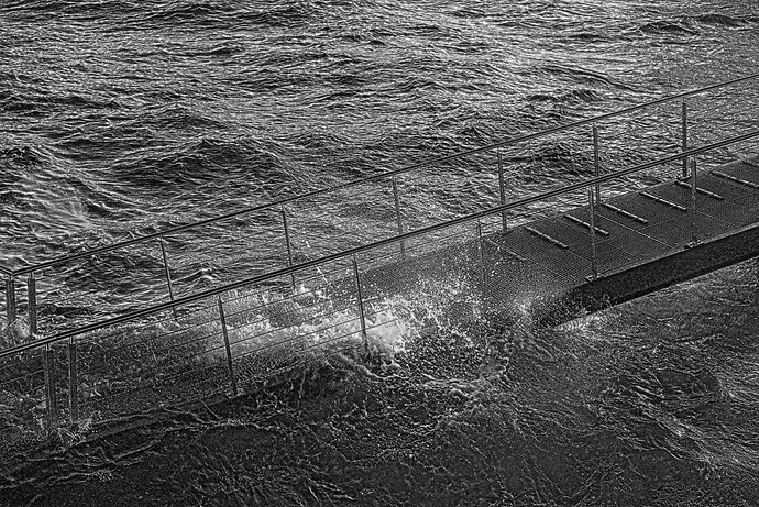 I thought @Jade_NL had the right idea, monochrome. Water can have great texture in such treatment. Also let me add aggressive contrast that wouldn’t have looked good in color: