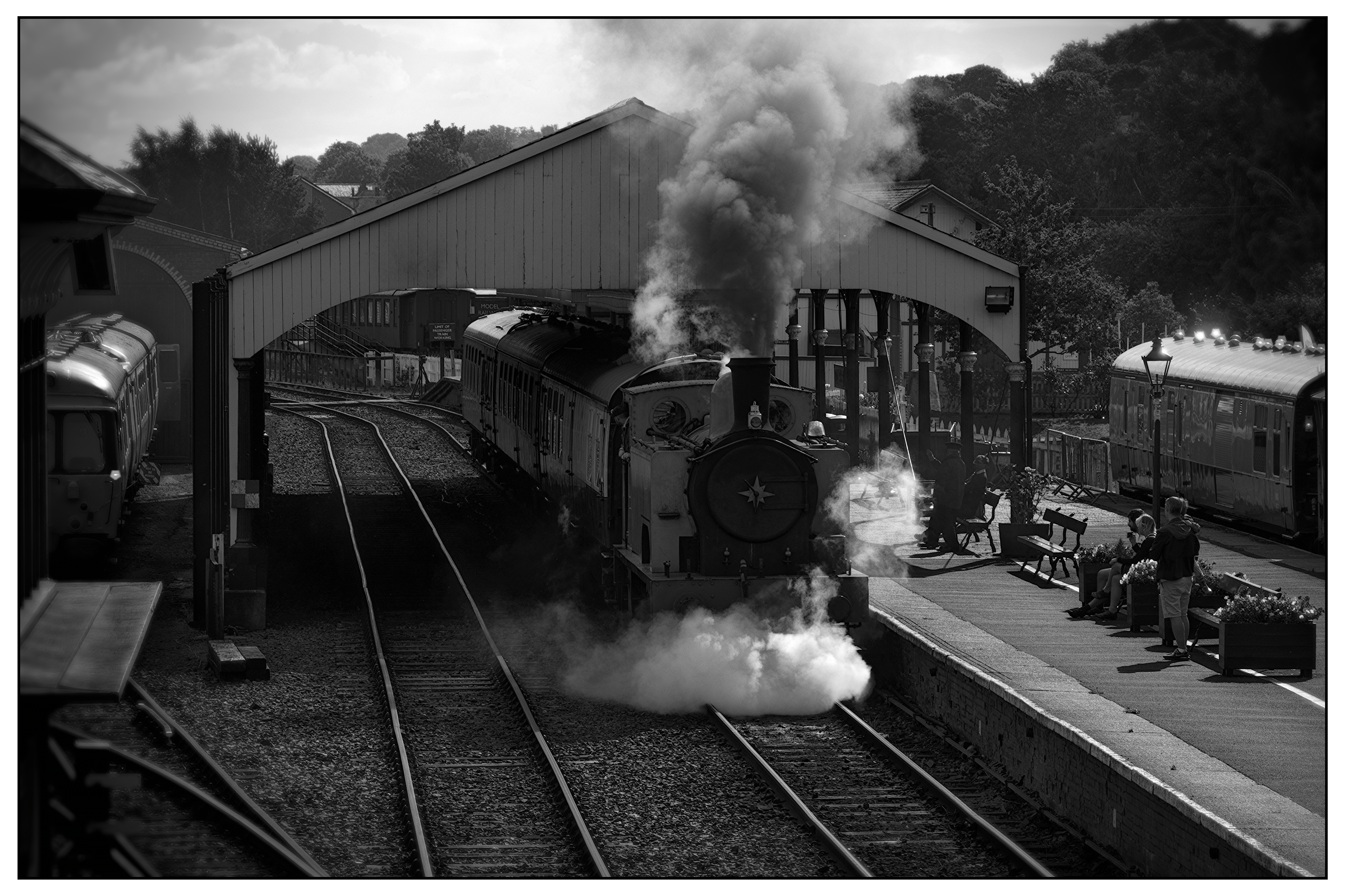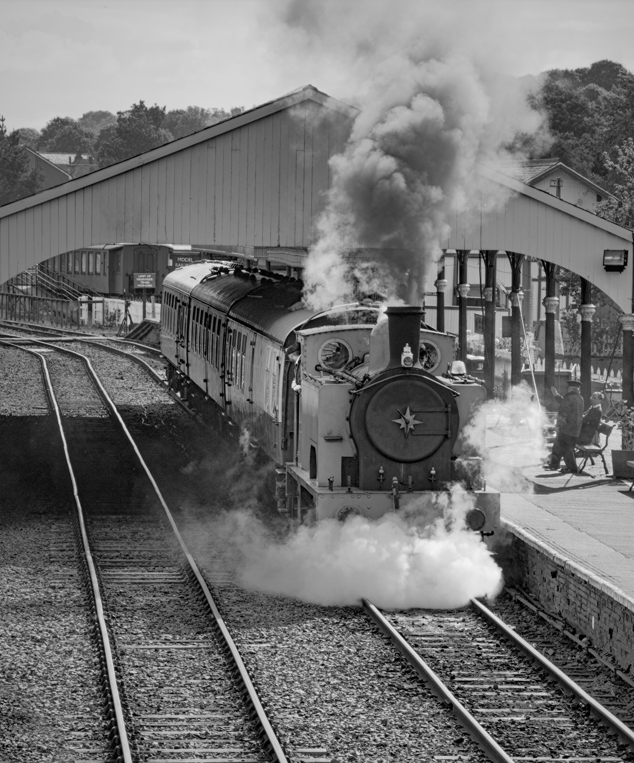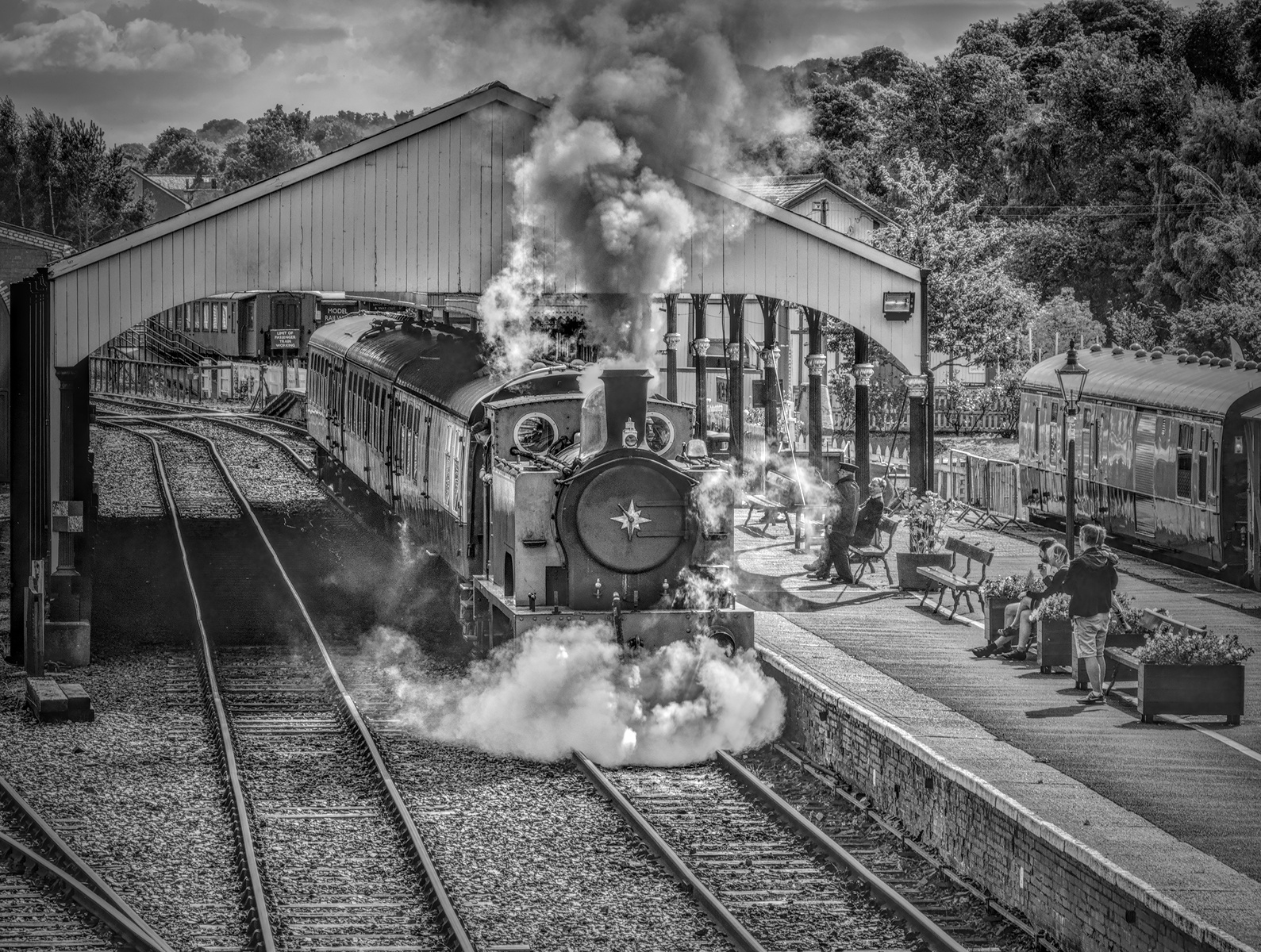 I desaturated the image, using curves I set the black and white points and applied a very slight “S” curve - mainly at the top end to whiten the steam.