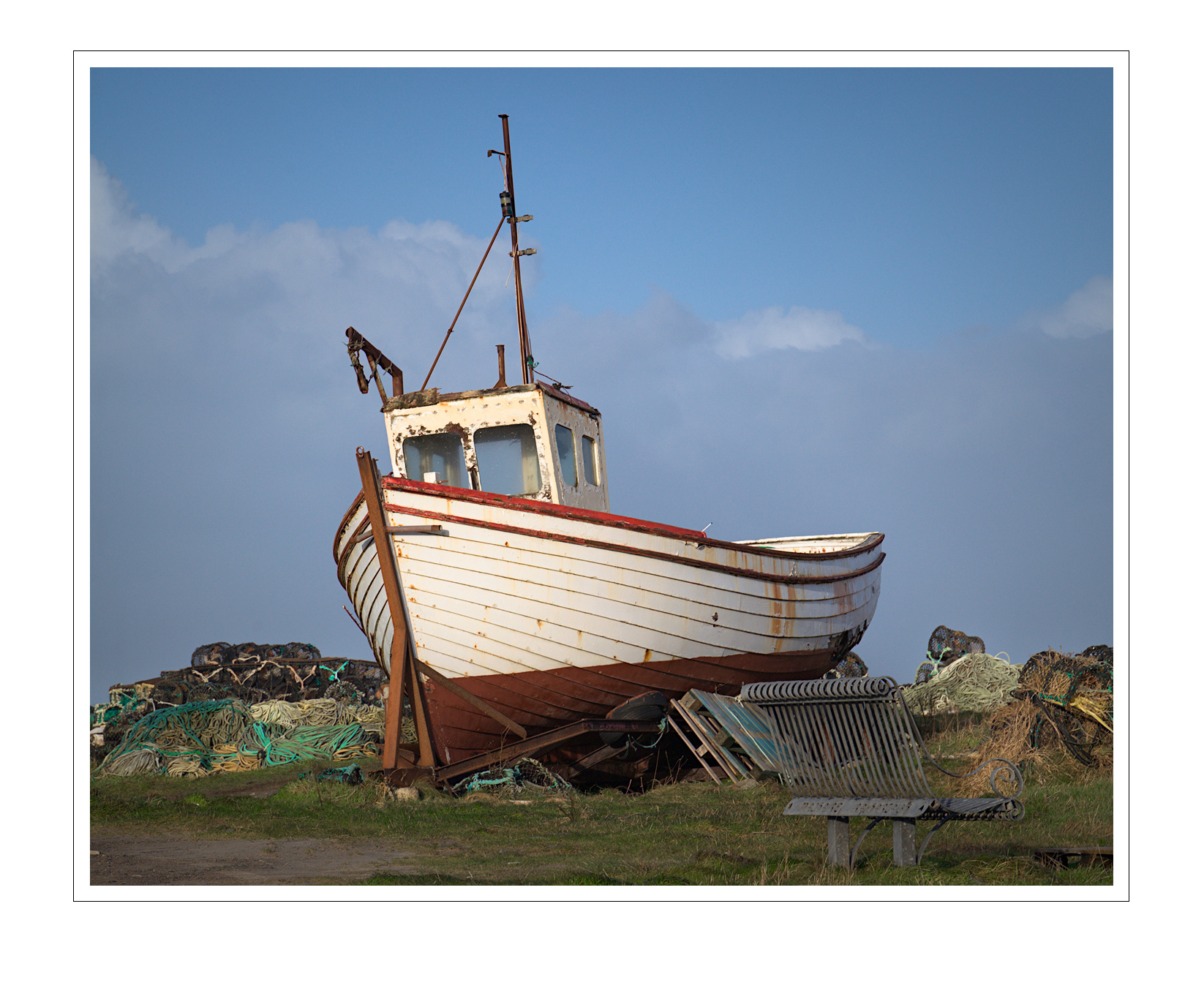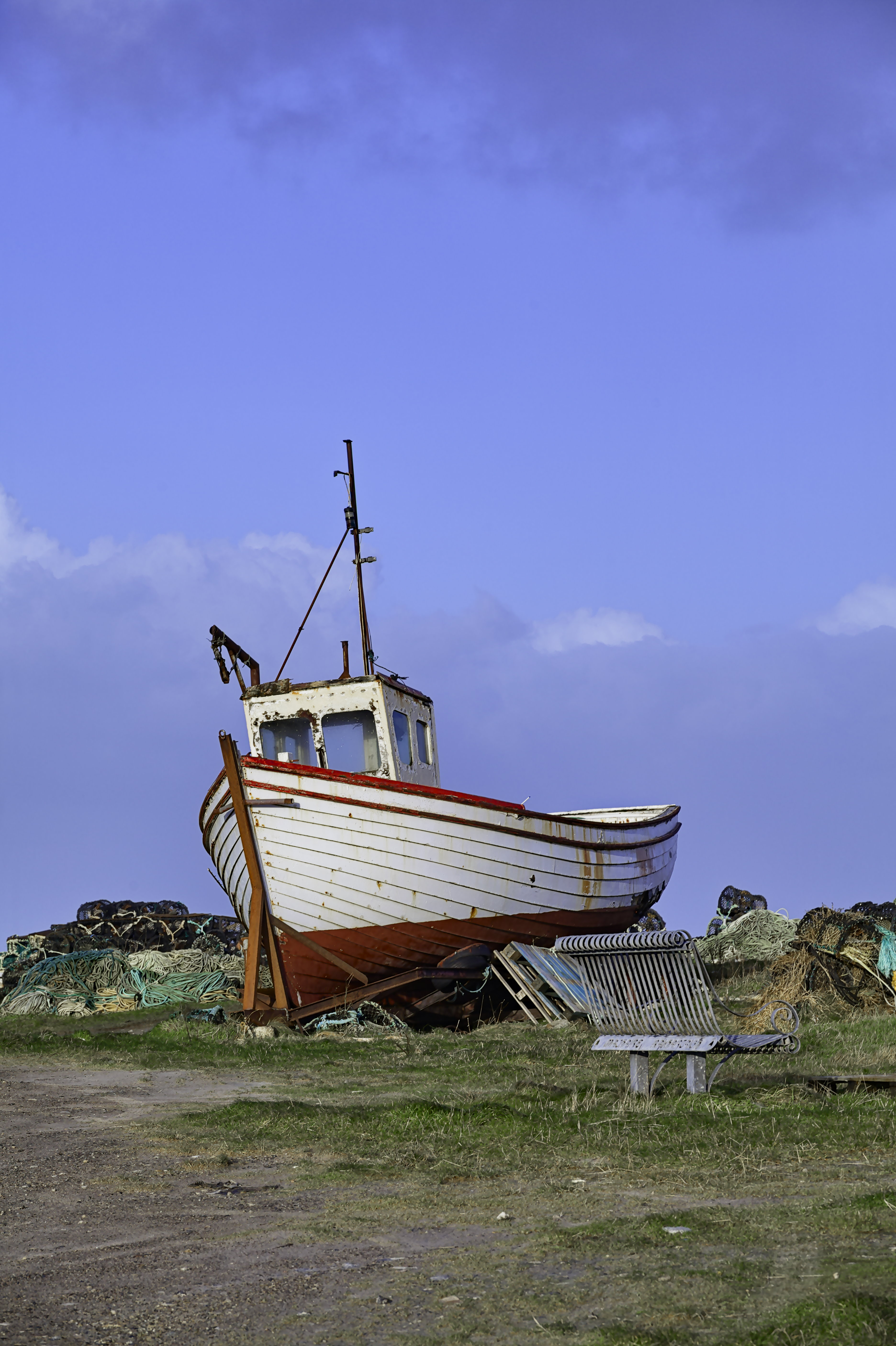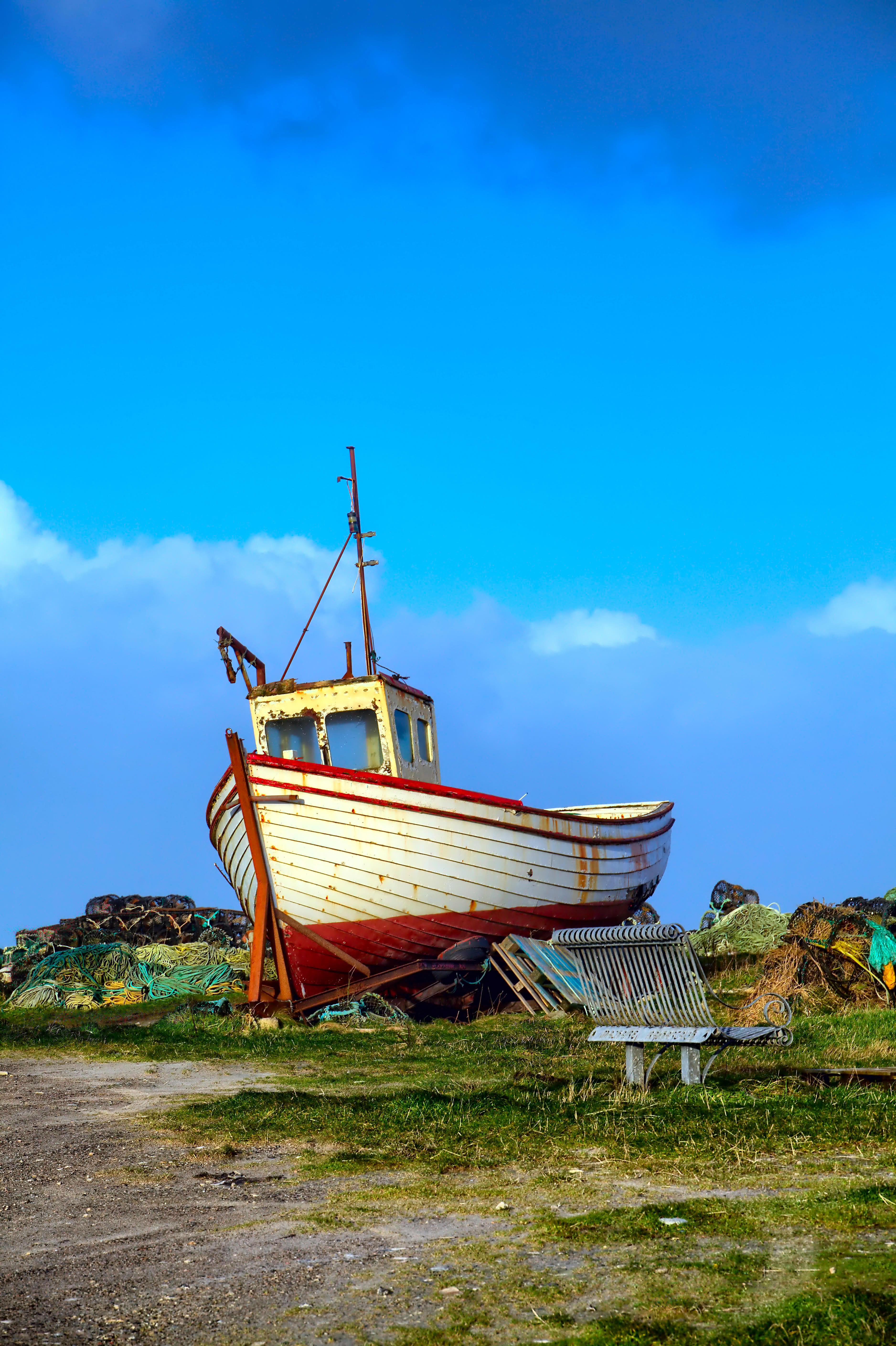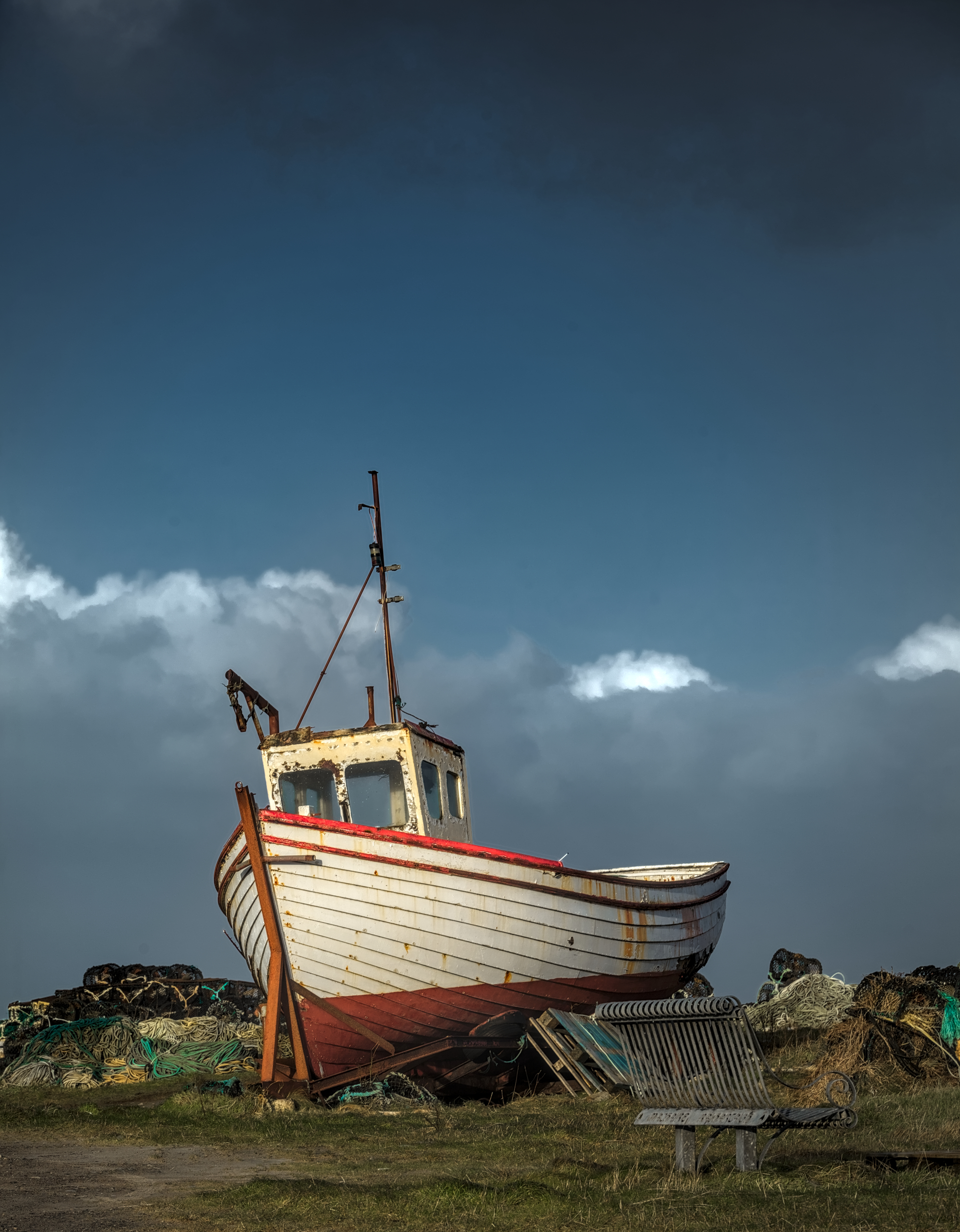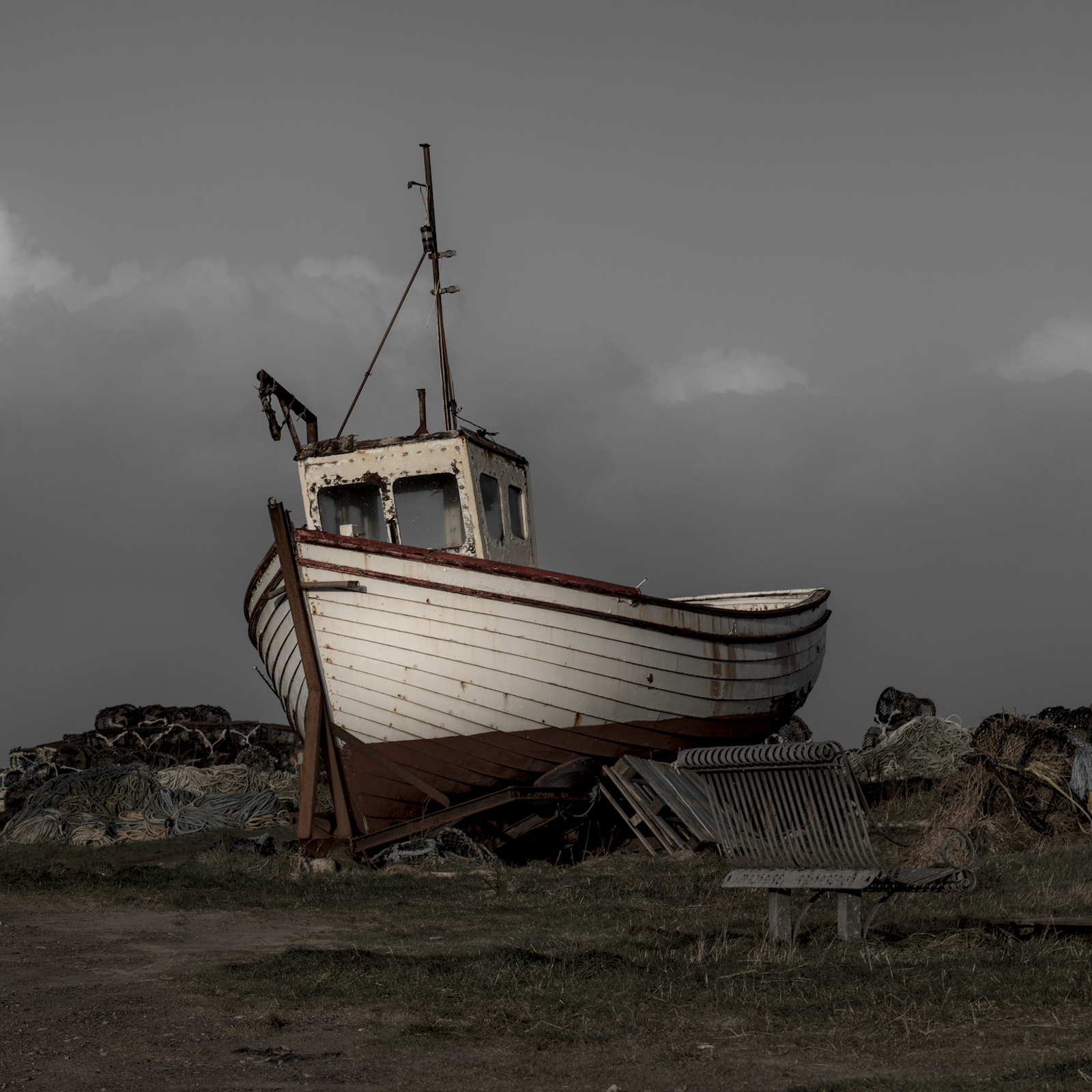 An attempt to isolate the foreground from the backround by desaturating the sky almost completely, while preserving a bit of color on the boat.