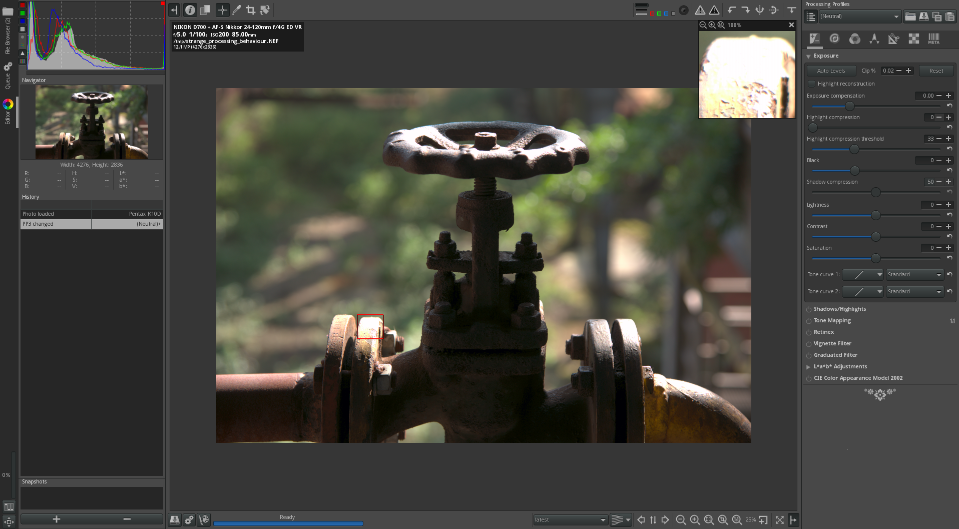 The Nikon D700 is handled correctly by RawTherapee using neutral settings.