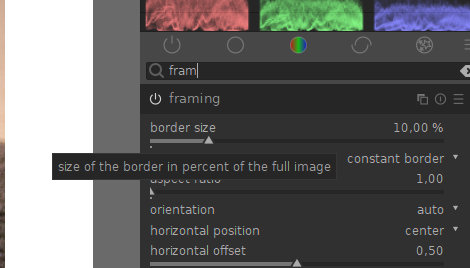 And for an underlying full image of 3000 x 2000 px and a constant border size of 10 percent the resulting image plus frame becomes 3333 x 2333 px.