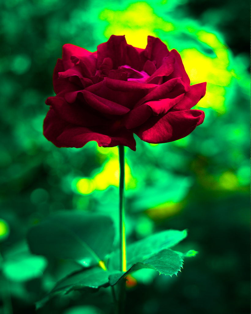 Notice that the rose got quite a bit darker and IMO looks a bit more realistic now. The “upper side” clipping issue in the foremost petals is still present. There’s also a horrible skew of the background greens toward yellow.