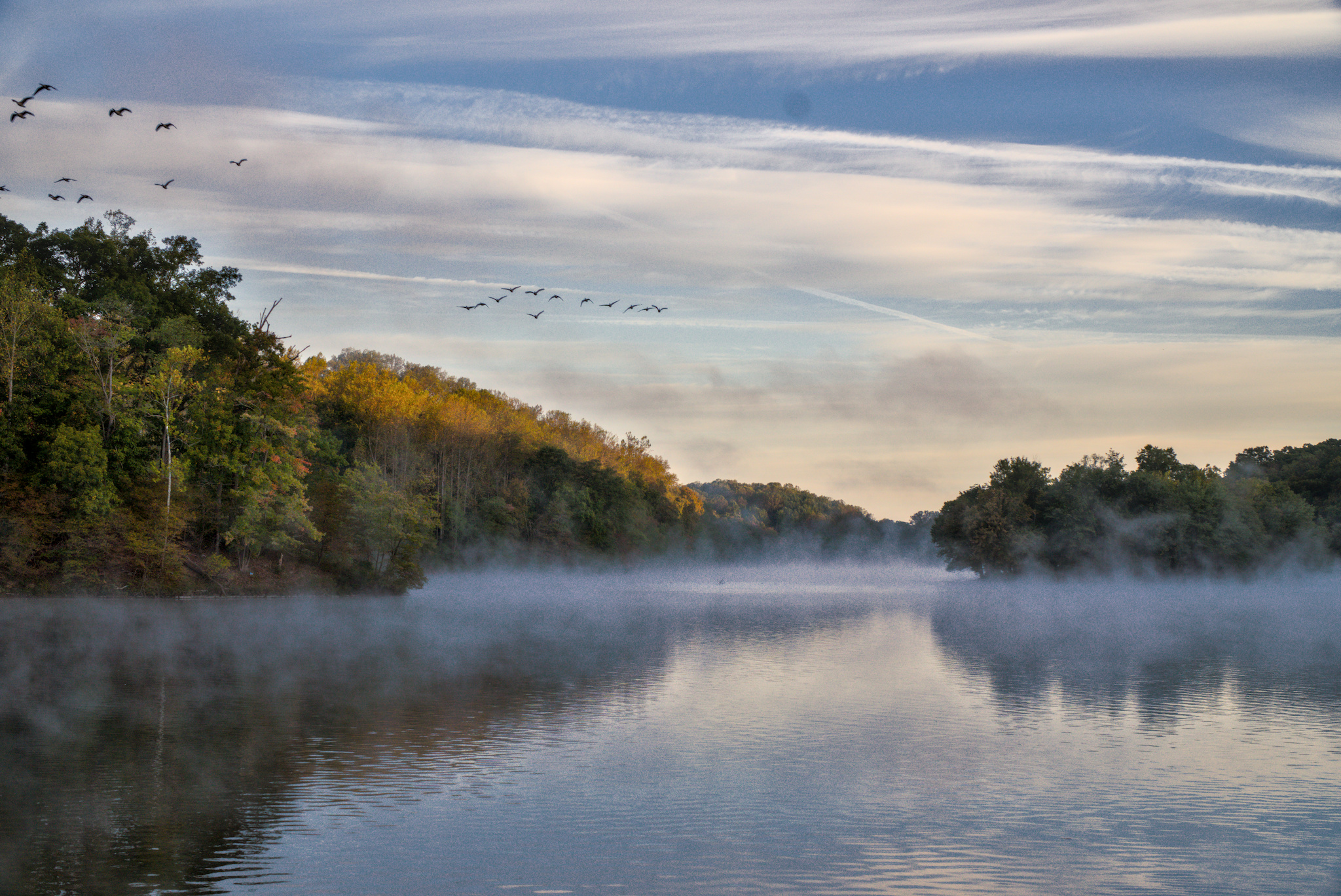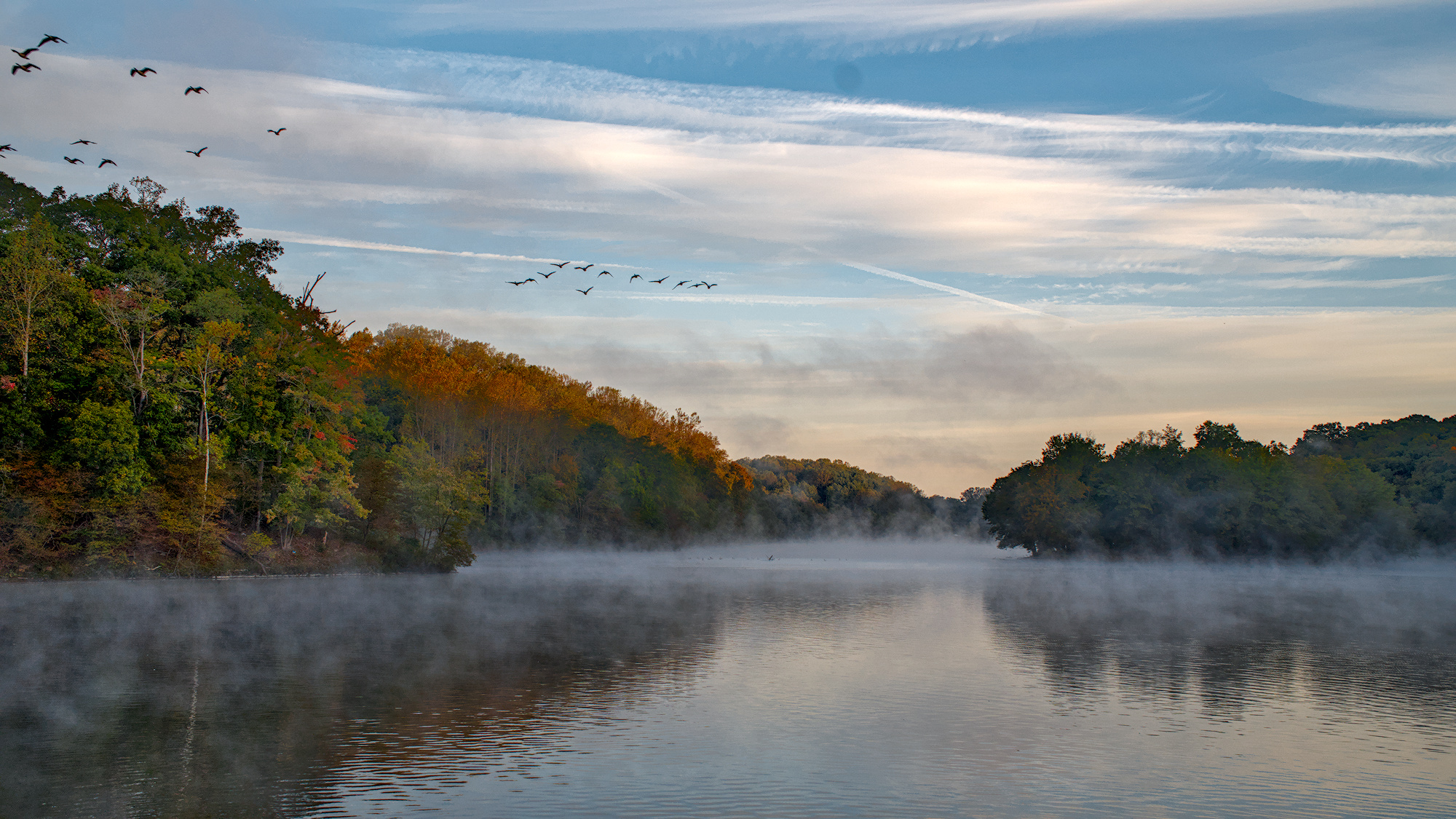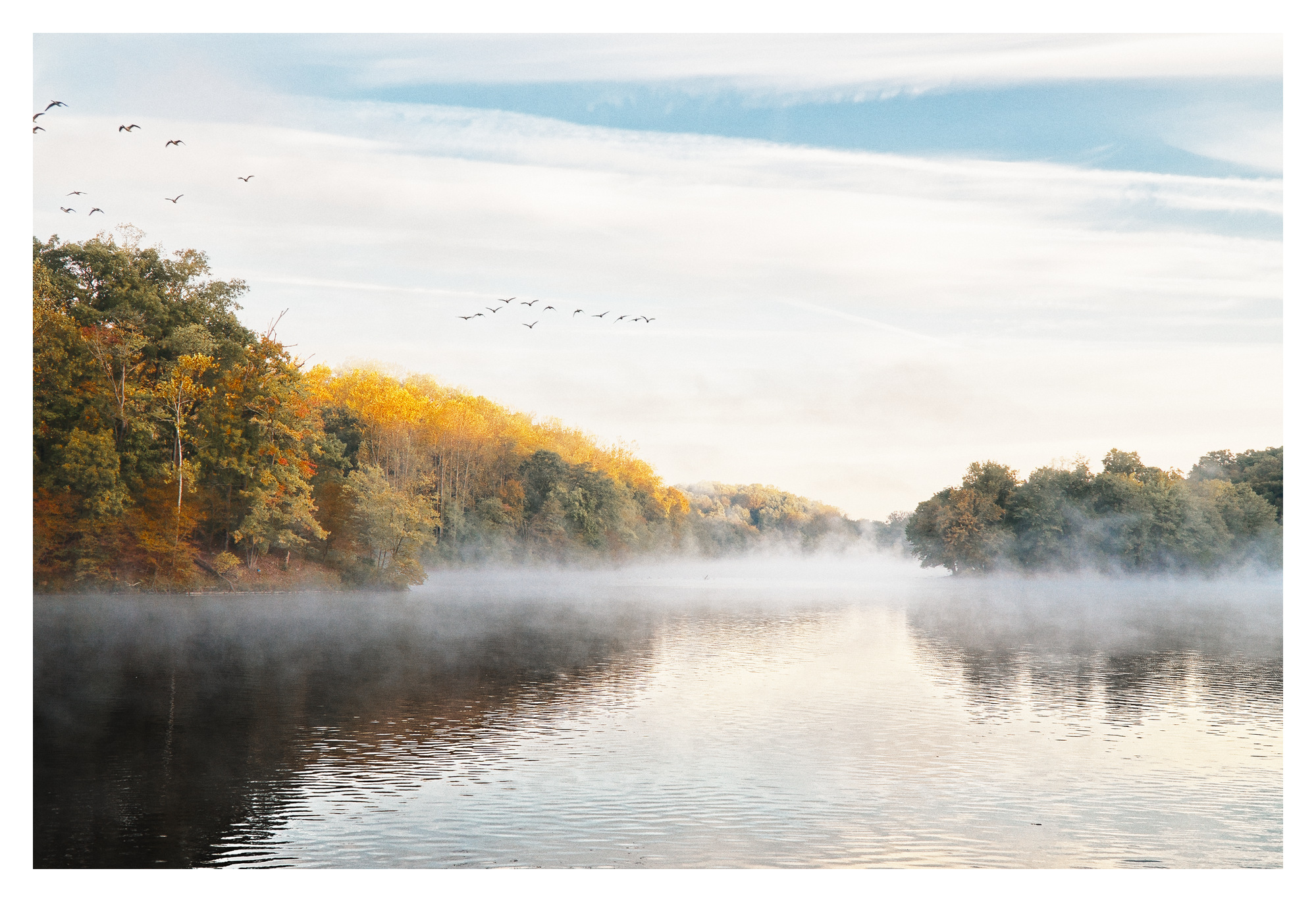 I find I really want to see the trees on the left – there are some great autumn colours hidden away in there. I’ve hazed out the most distant trees, left the trees on the right as a kind of low contrast, low lightness area, almost negative space, and tried to make those colourful trees almost smack you in the face.