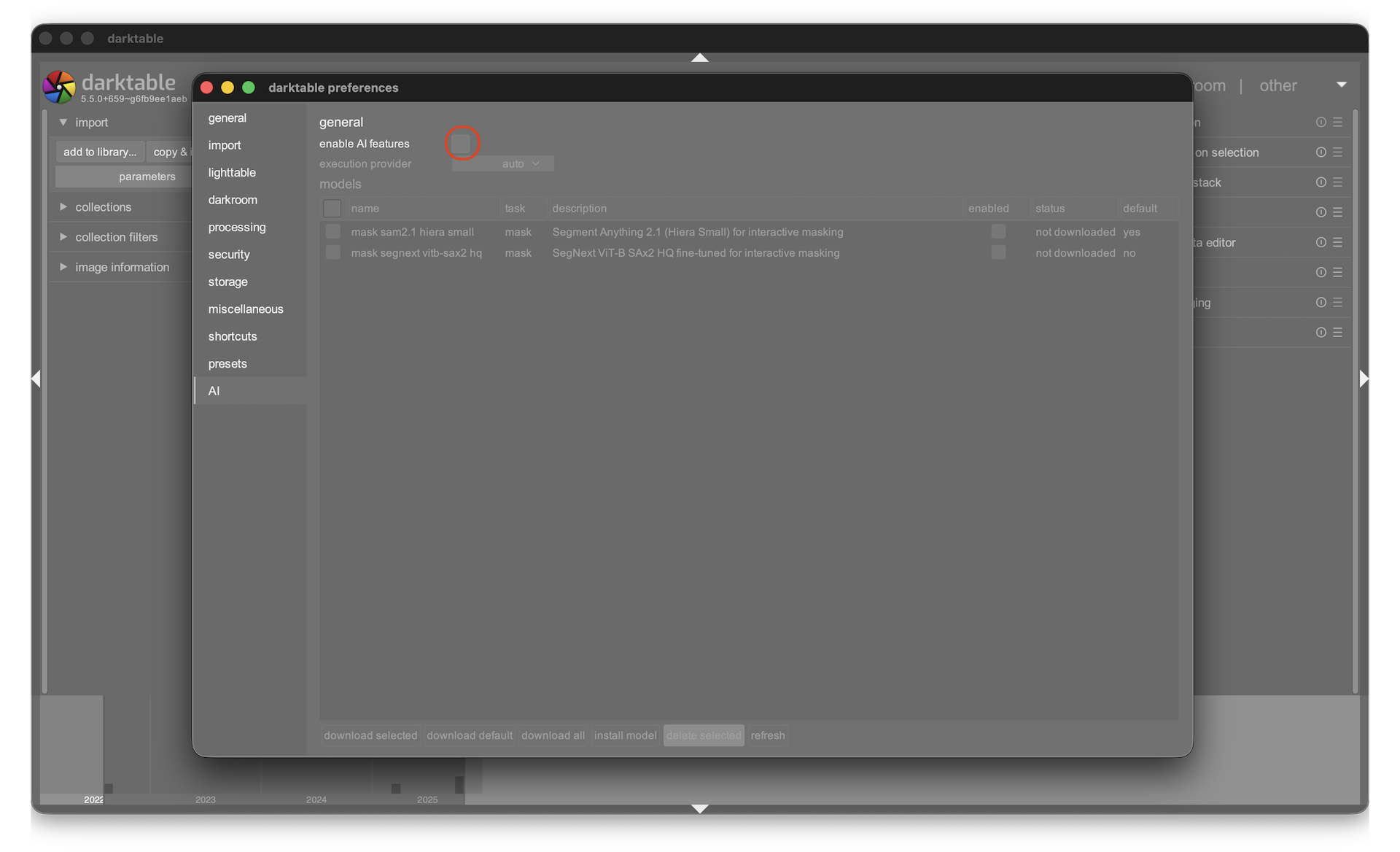 If possible, run with -d ai flag for debug output: darktable -d ai