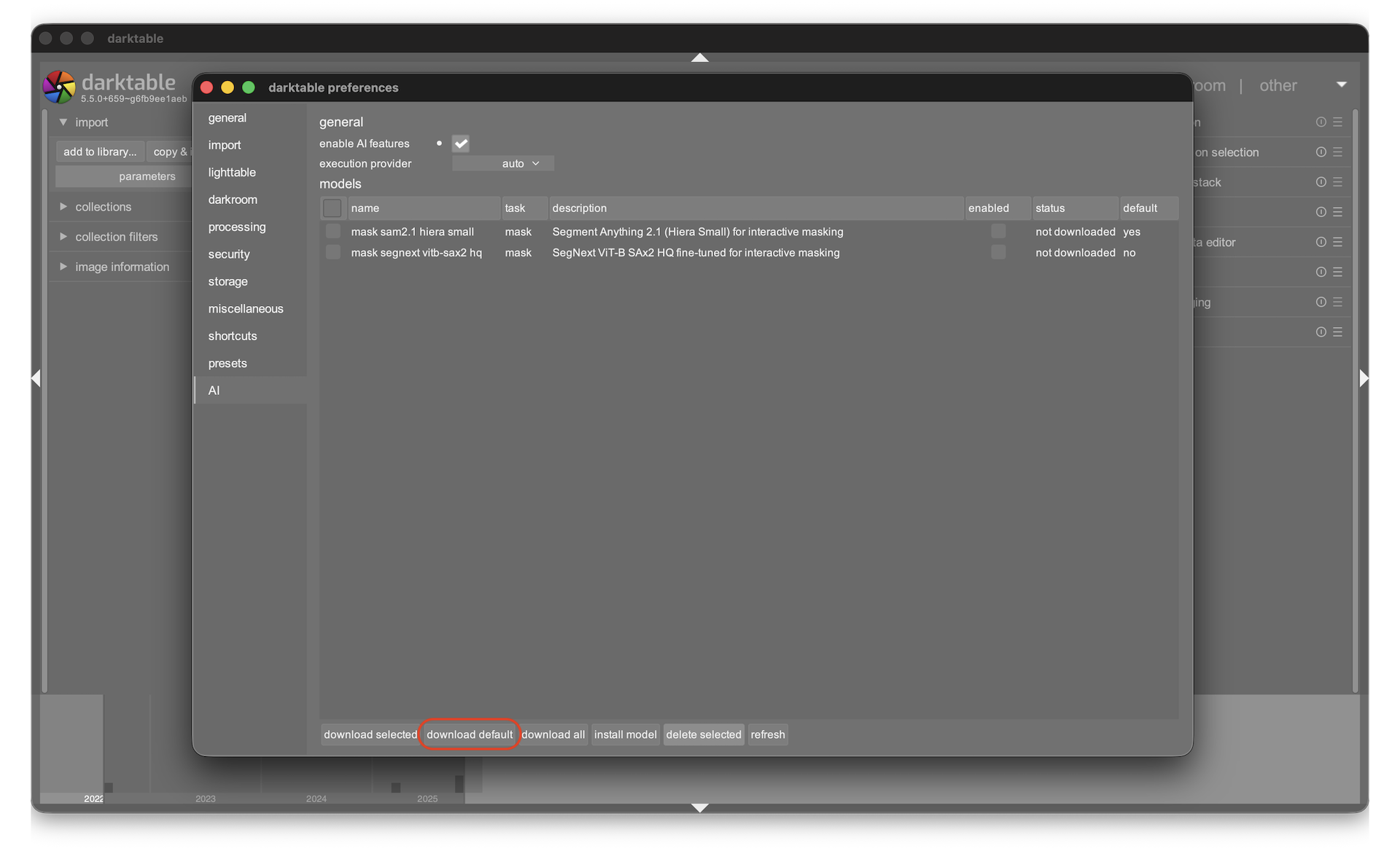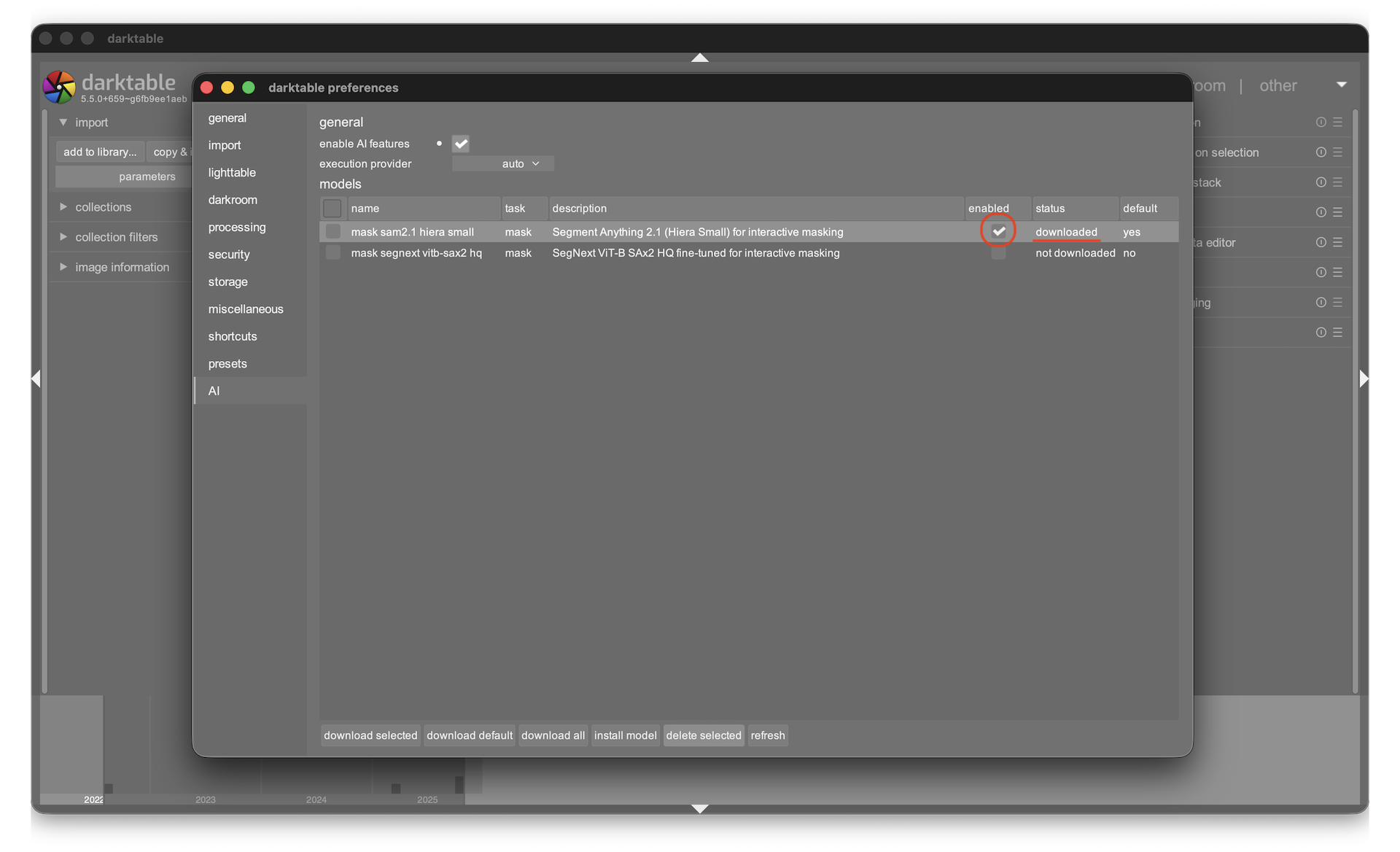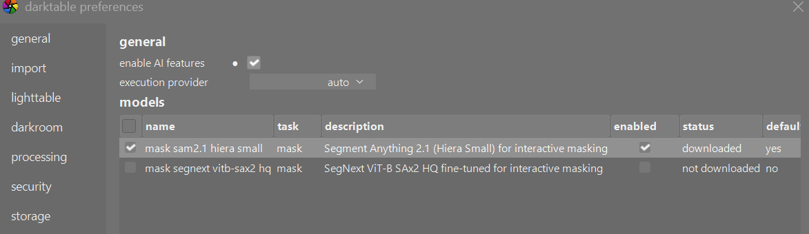 The SAM2 family also includes a Tiny variant which is faster but less accurate. You can download it from the darktable-ai releases page: