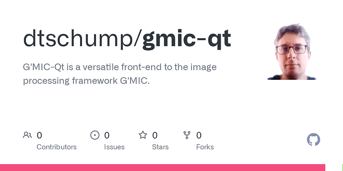 Do not hesitate to play with it and report any weirdness ! Link : GitHub - c-koi/gmic-qt: G'MIC-Qt is a versatile front-end to the image processing framework G'MIC.
