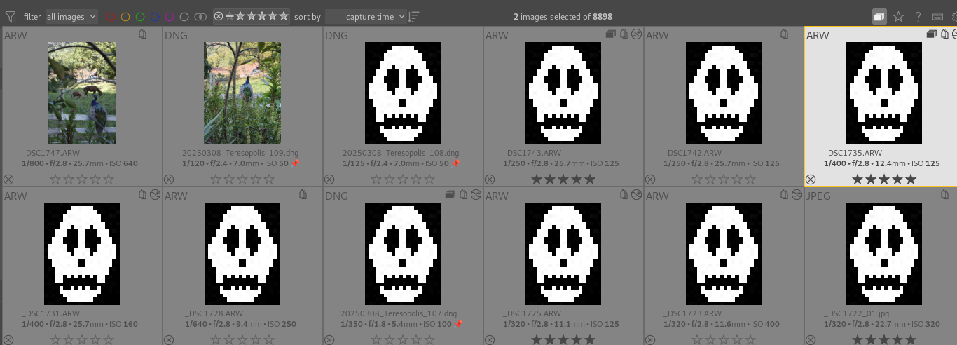 In the Lighttable, skull images keep appearing, but when I click on them, the photos open normally. How can I fix this?