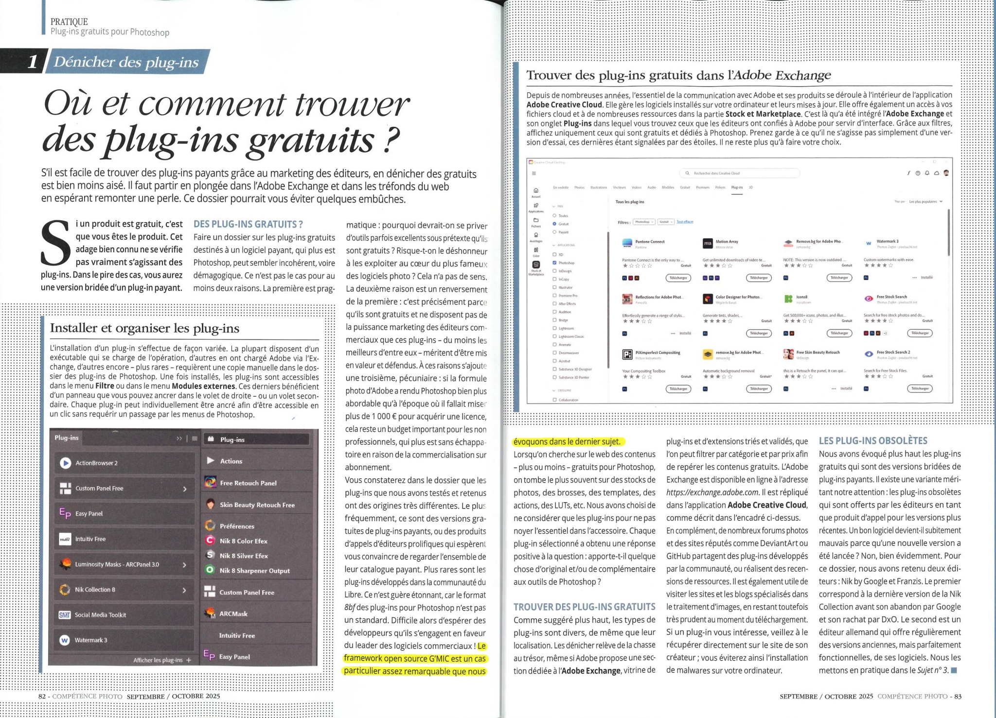 French magazine Compétence Photo, No. 108 (Sept/Oct. 2025) apparently contains a short article about the G’MIC plug-in in its section “Practical • The best free plug-ins for Photoshop.”