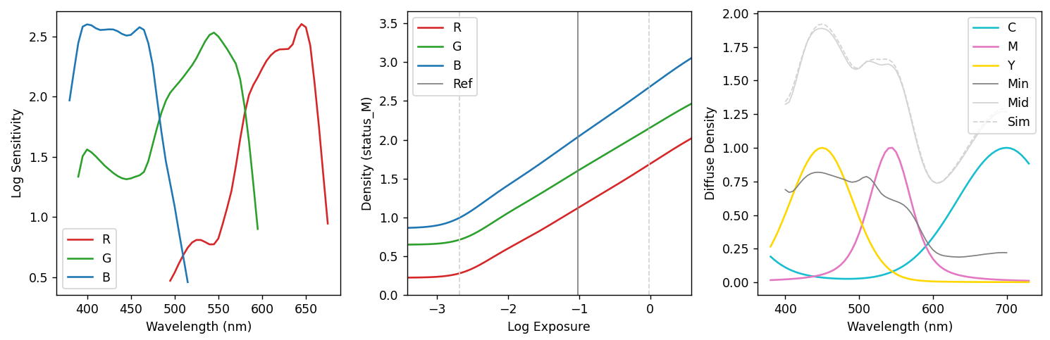 I will definitely try to write something, and maybe prepare some code to share. What I did is to take the datasheets of film stocks and print paper from Kodak and Fuji, and use them to recreate a physically reasonable pipeline. The data for Portra 400 that I used above, for example:
