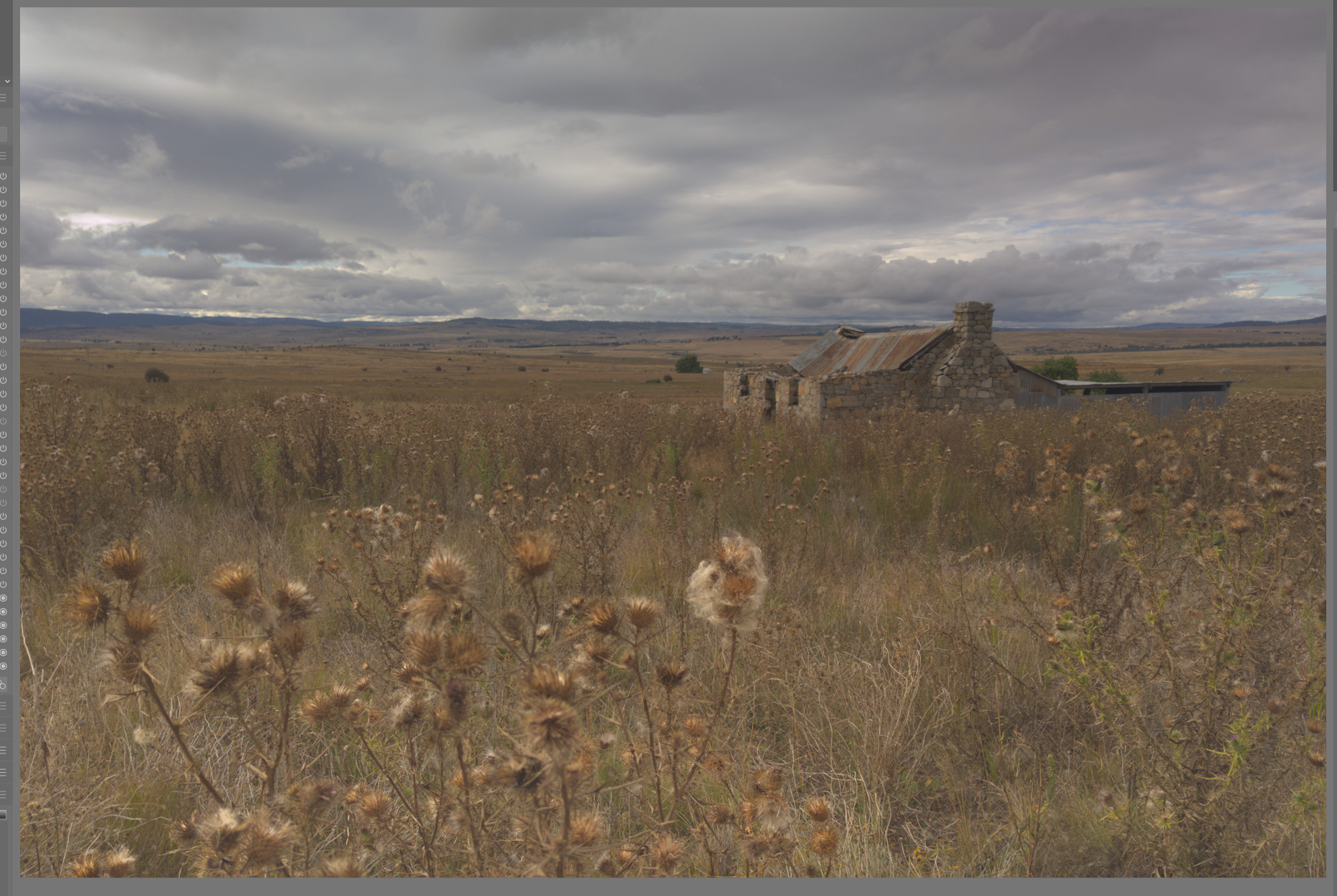 Can’t say that this was easy. Bringing the thistles into the limelight meant Isolating them from the background was quite a challenge. Had to do a lot of back and forth with several modules as the xmp file will tell you. Here’s my attempt
