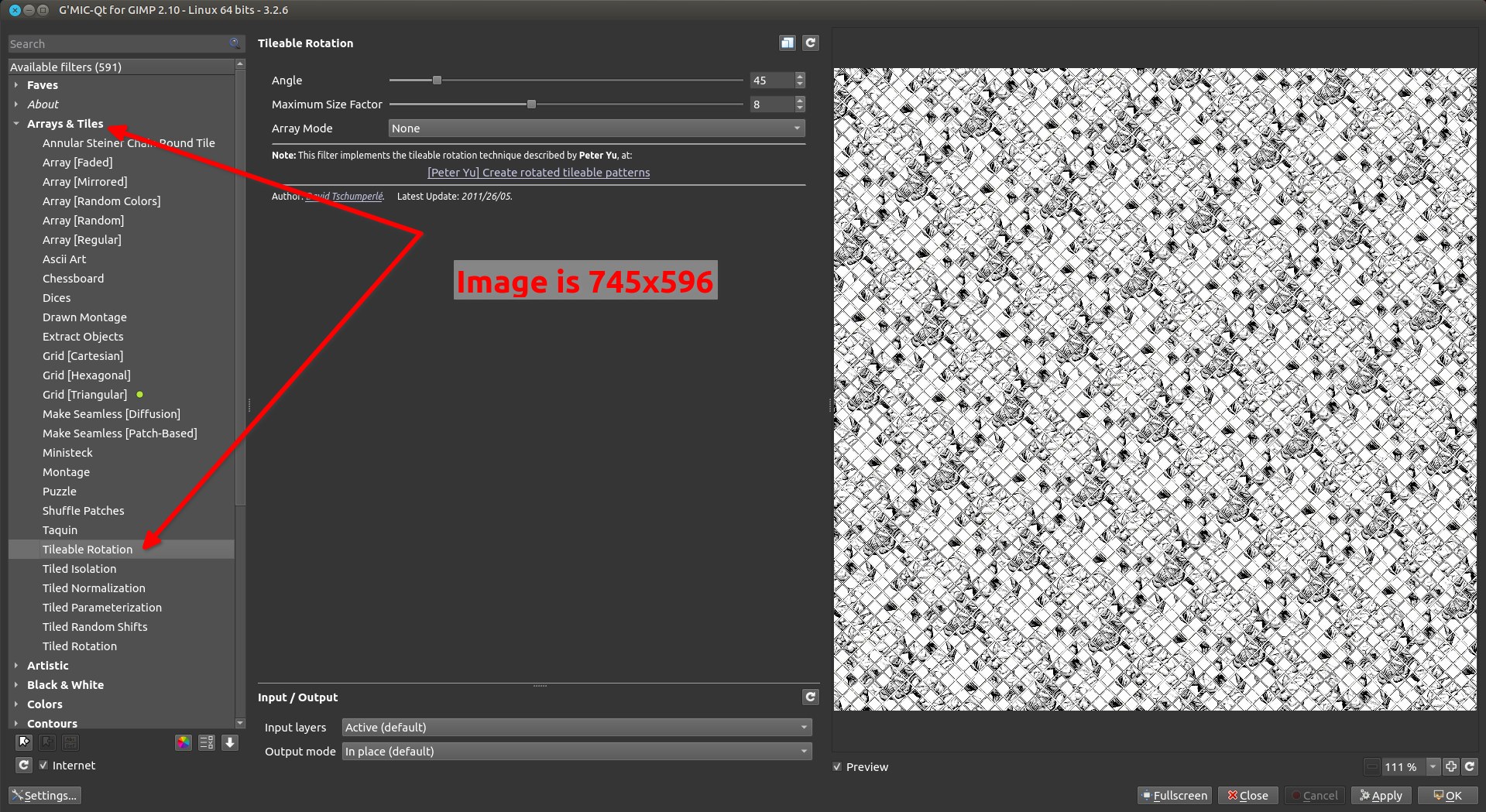 Could it be possible to write it in G’MIC, for people to know that they need a square image for the filter to work? Something like below or above the link given in G’MIC?