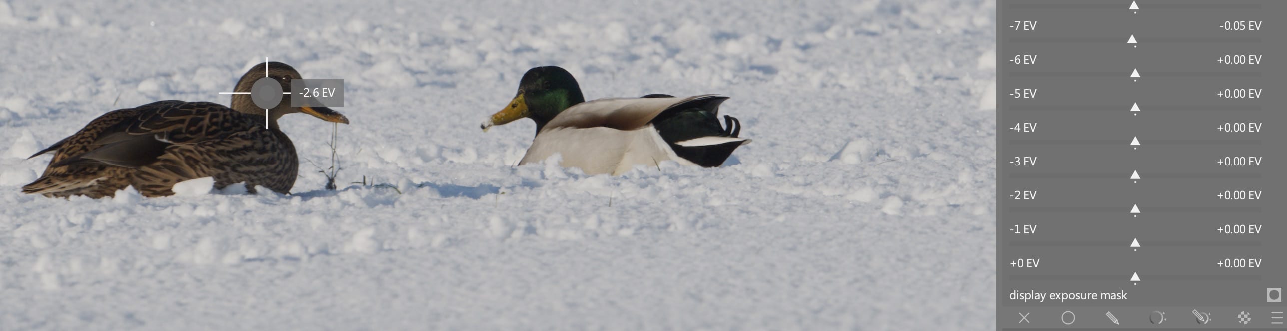 So let’s open the image in darktable, and measure how dark the duck is. That is -2.5EV