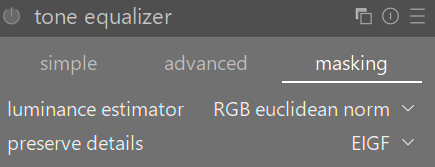 Wondering if it would makes sense of removing, or changing the order of tab… that you have first the advanced tab and then the simple tab. Yes, this also sounds a bit odd… but if the majority of the users is only using the advanced and mask tab, than having the advanced tab as the default makes sense…