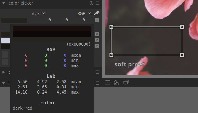 For me lab values don’t change. They dont change with softproof activation or a histogram profile change even though in each case the histogram changes and…using a 24 patch color chart with the picker set to rgb mode the picker values do change and the changes seem to be reflecting and honoring activation to the softproofing profile or a change in the histogram profile… I also checked my display profile is not clipping and changing it to linear rec2020 alters the display ie it becomes dark as you might expect but there is also no impact on the picker values so no interference from the display profile in the pipeline for these observations…