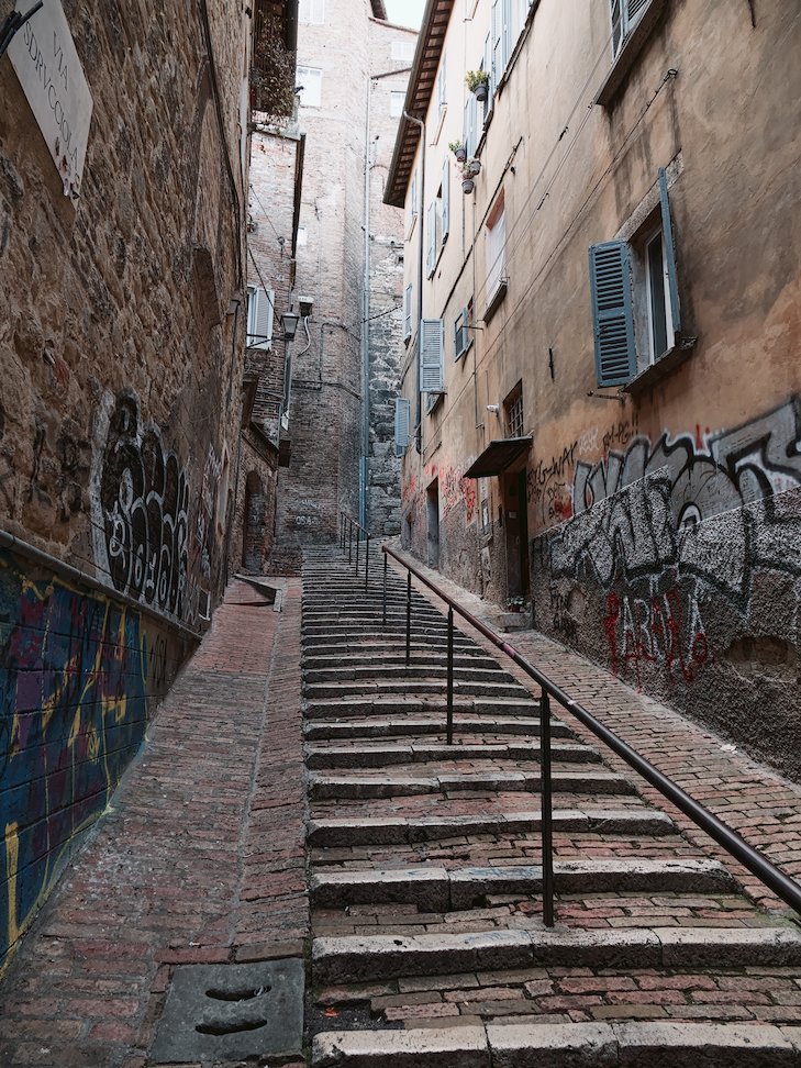 That stairway leads from one street to another. Perugia is hilly, and a beautiful place.