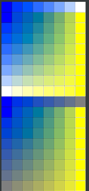 So, we have this “Blue turning Violet” problem. . . and it spans seemingly every color model under the sun (maybe not IPT and JzAzBz?). Well, except the hokey spectral model I cooked up: if I desaturate sRGB blue using good old fashioned white or grey paint, it doesn’t turn violet, and it still makes intuitive greens: