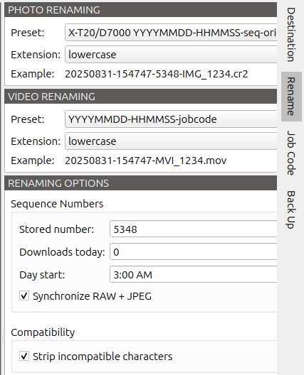 I’m setting up my file system (raw/YYY/Mo?DD/camera). Where do I find thefile names?