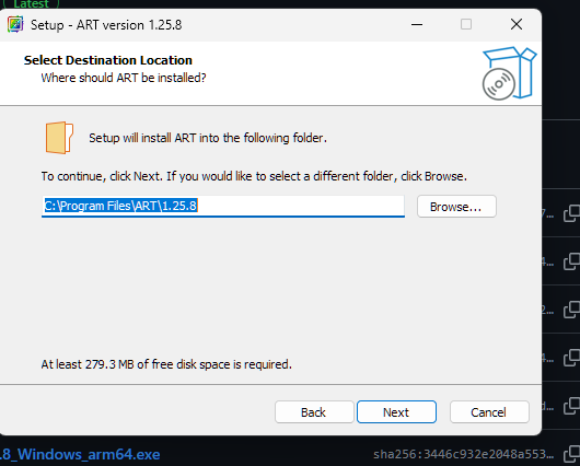 I think I was misunderstood. It doesn’t make a difference which directory you install it in. Let’s say that I want to install ART version 1.25.6 on to drive C. And then with the next version - 1.25.7 - I go to install it also on drive C, well, it creates two separate programs, and if you continue this, the process continues.