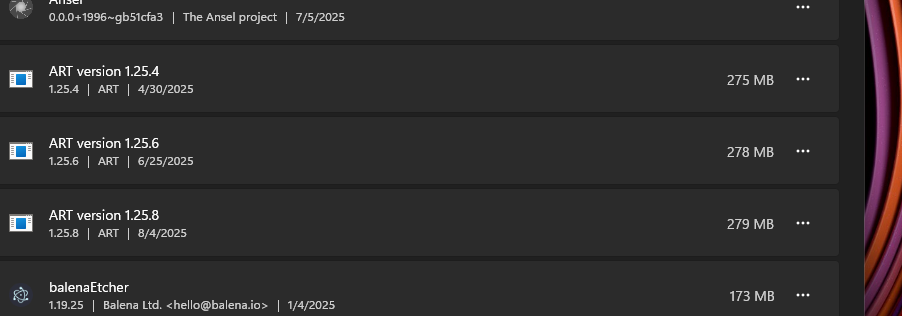 Something that has become a bother, especially since ART releases are becoming more frequent, is the fact that the new version does not overwrite a previous version. The end result of this is that there winds up being a multitude of ART versions after a period of time.