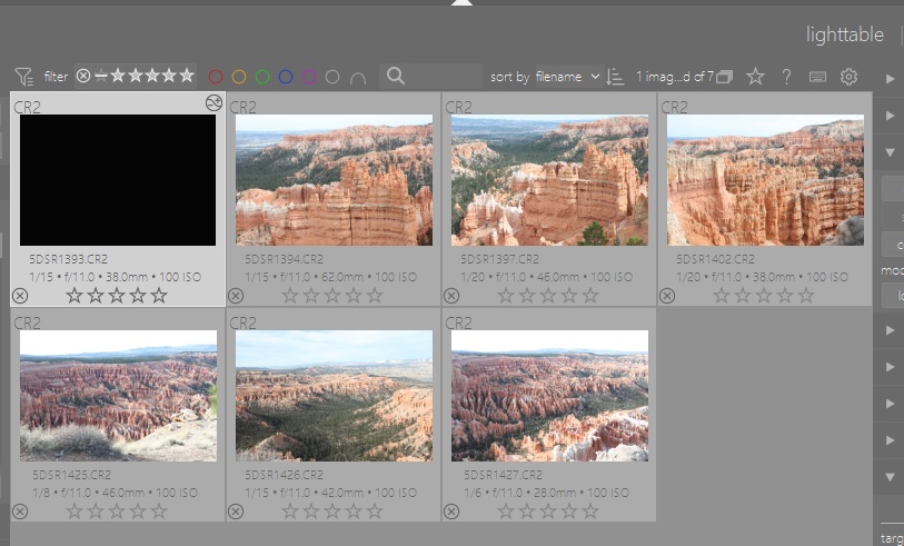 This issue applies to DT Version 4.6.1 running on Windows 10. I just added a new collection of image files, these are Canon .CR2 format raw files, and a screenshot of what gets displayed follows: