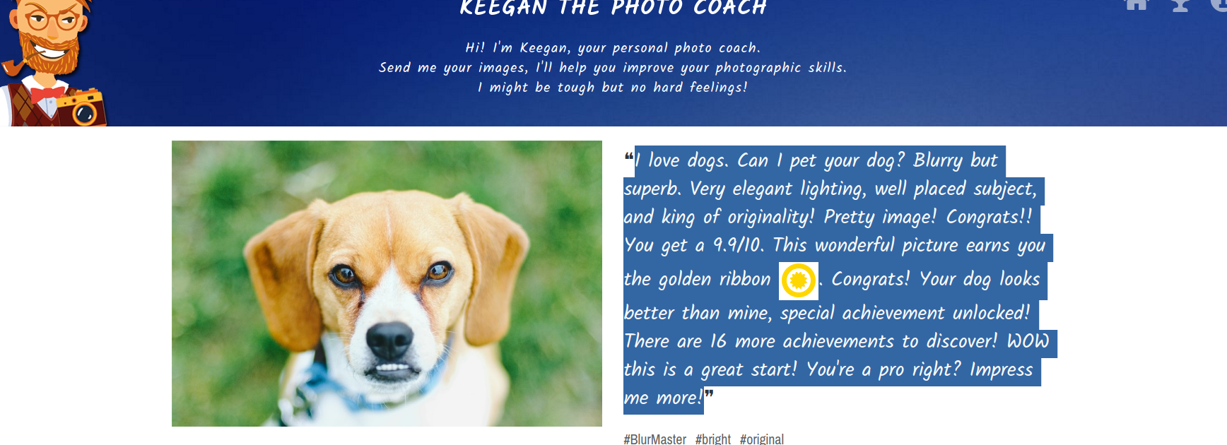 https://keegan.regaind.io/ is an AI based photo coach. He sounds like he might be a little mean