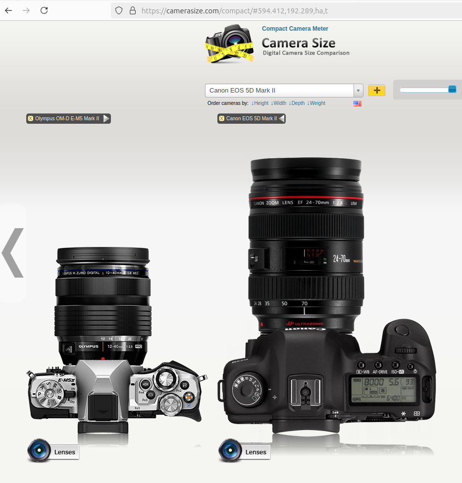 The difference isn’t quite as dramatic with a small full frame mirrorless body and a 24-70 mm f/4. The full frame option enables shallower DOF (compared to the f/2.8 m43 lens) and has sensor that’s ~4 times larger. Considering that I think mirrorless full frame is quite impressive.
